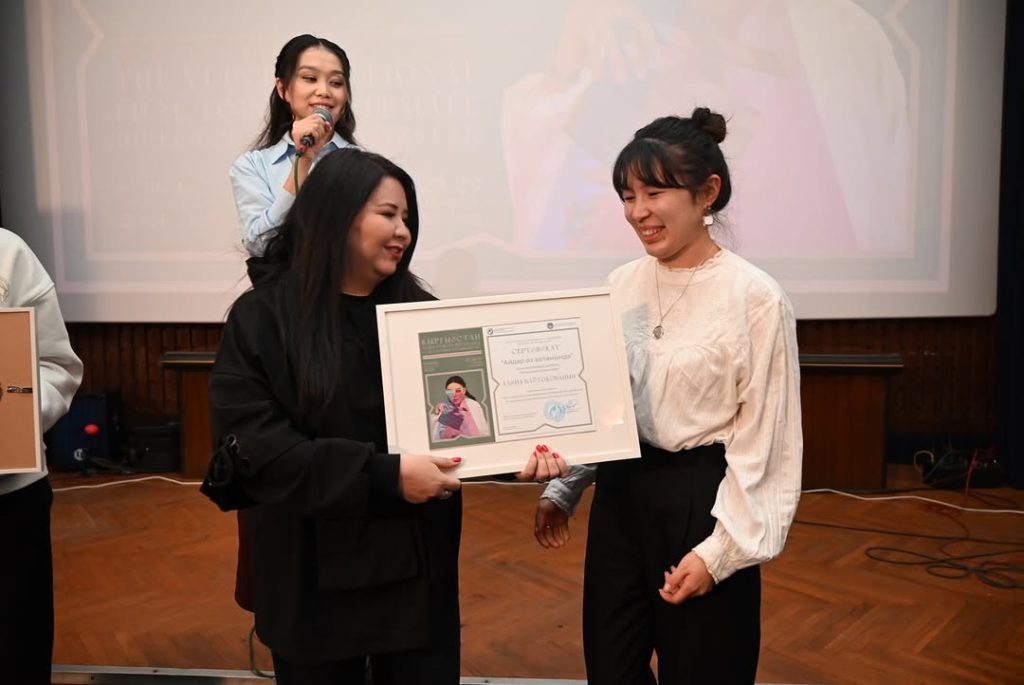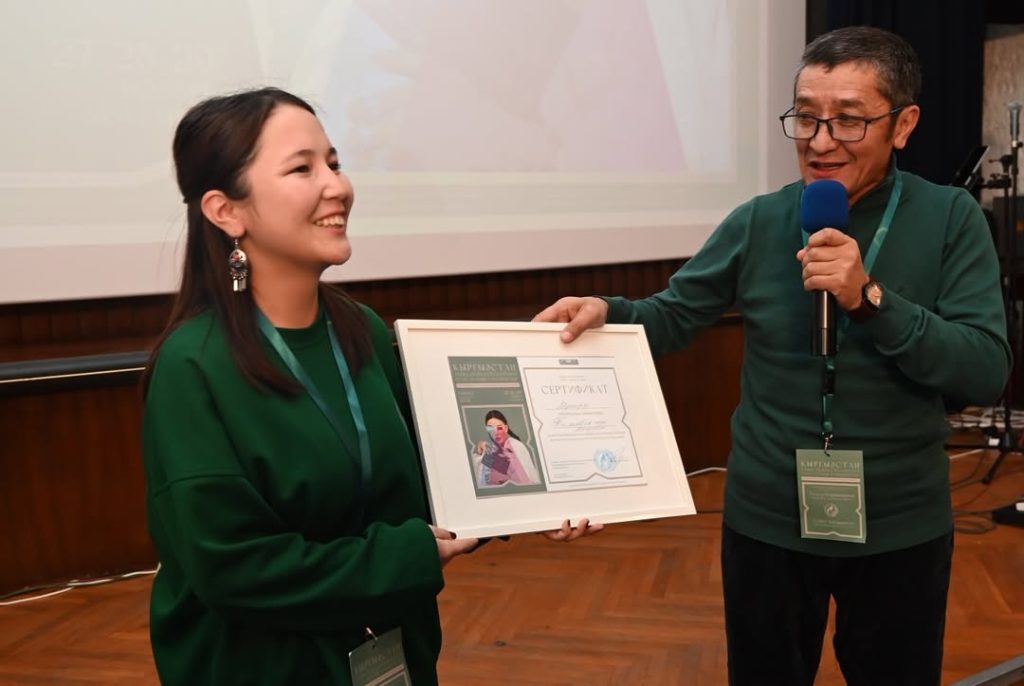 - Certificate for “Support of the Next Project” – monetary award of 40,000 KGS – Saadat Kazakbaeva, director of “The Bell at Dusk”, Kyrgyzstan.